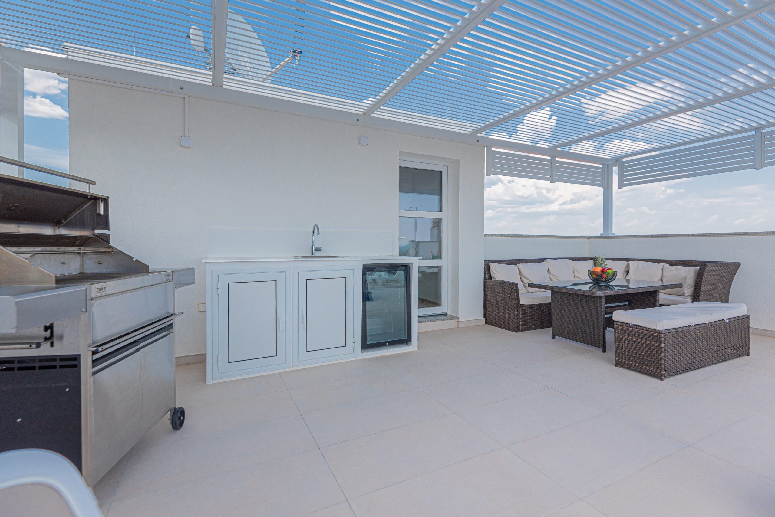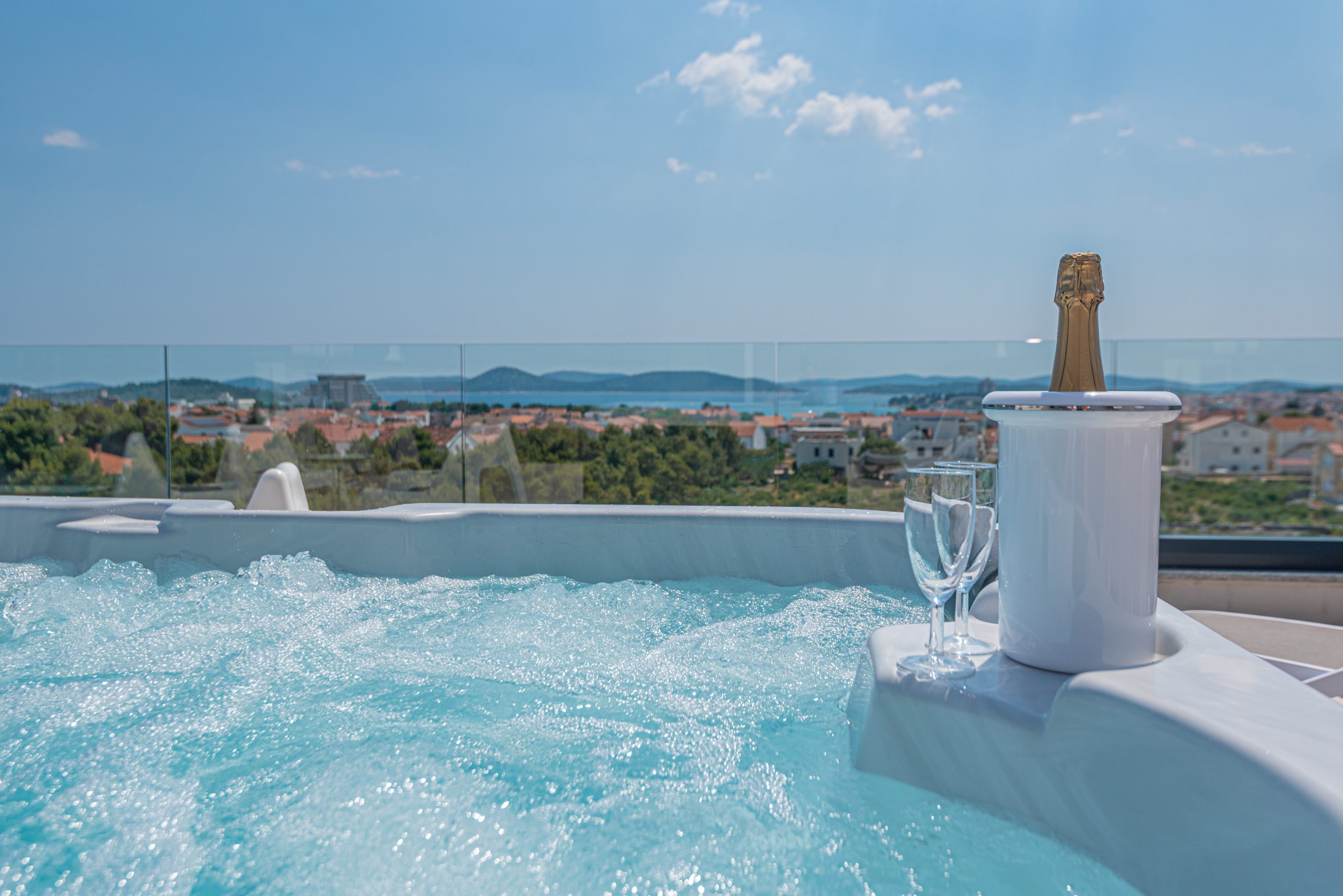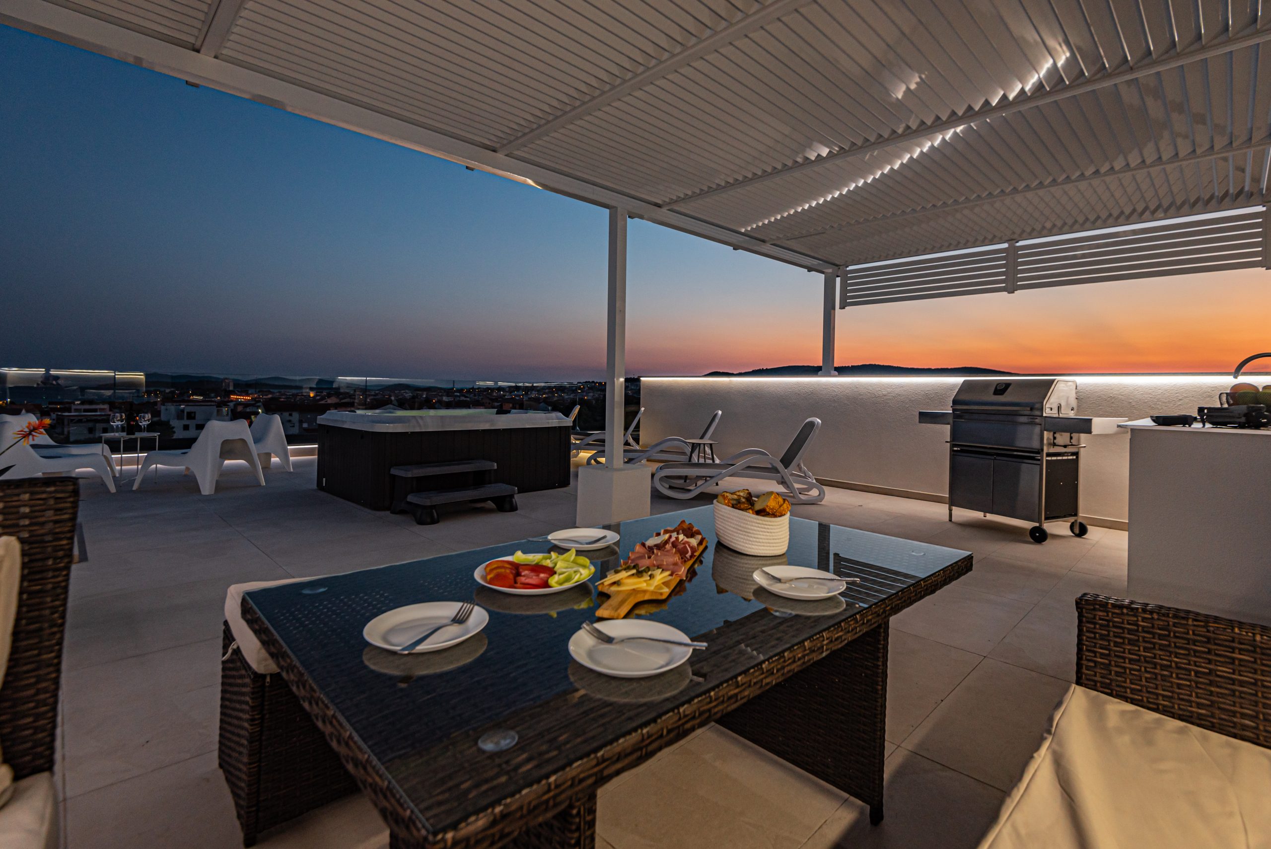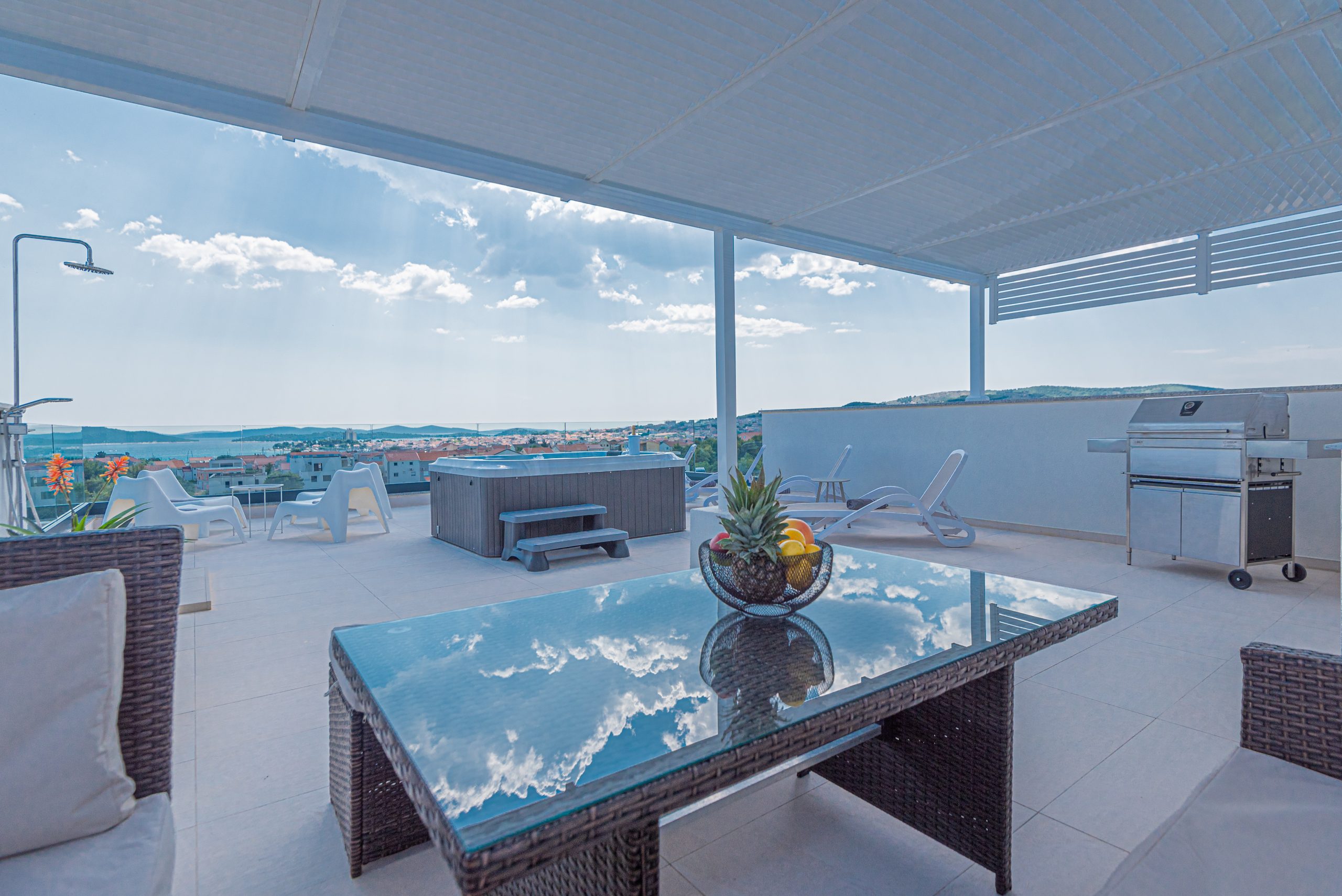Apartman ima prostranu krovnu terasu s privatnim jacuzzijem, savršenu za opuštanje na otvorenom. Bilo da uživate u mirnoj jutarnjoj kavi ili večeri uz zalazak sunca – ovdje vas očekuje odmor na najvišoj razini.